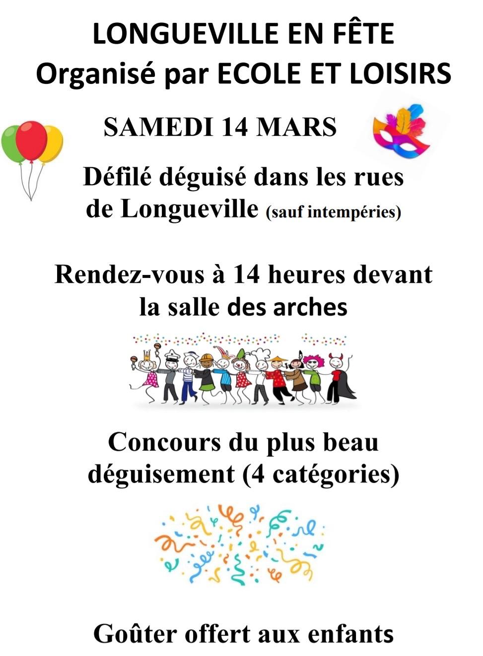 Samedi 14 mars 2026 - défilé déguisé dans les rues de Longueville (sauf intempéries)