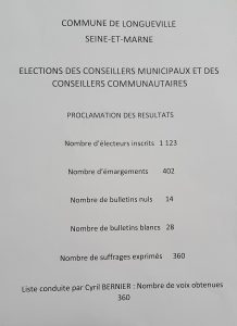 La liste #Toujours ensemble pour mieux vivre à Longueville# , seule liste qui s’est présentée aux suffrages des Longuevillois à donc été élue.
